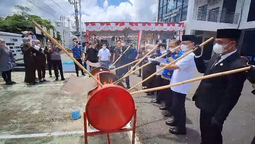 Dalam kegiatan tersebut, Bupati Joncik Muhammad, Kapolres Empat Lawang, dan Kepala Kejari turut serta melakukan pemusnahan barang bukti secara simbolis.